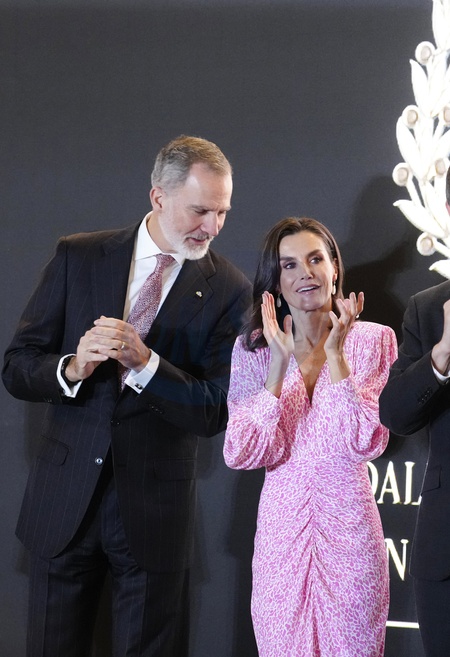 Król Felipe i królowa Hiszpanii Letizia wręczają nagrody podczas ceremonii wręczenia Złotych Medali Zasługi w dziedzinie Sztuk Pięknych 2022 w Pałacu Kongresów w Kadyksie