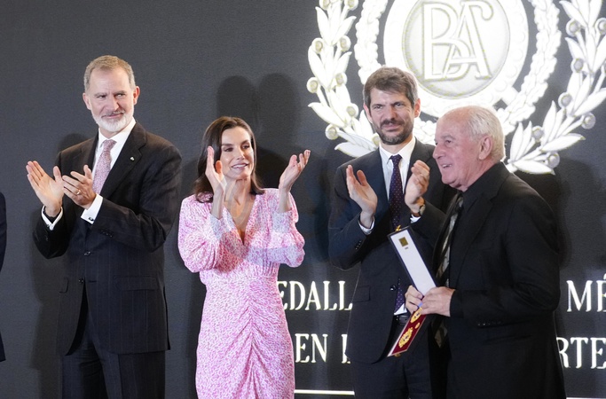 Król Felipe i królowa Hiszpanii Letizia wręczają nagrody podczas ceremonii wręczenia Złotych Medali Zasługi w dziedzinie Sztuk Pięknych 2022 w Pałacu Kongresów w Kadyksie