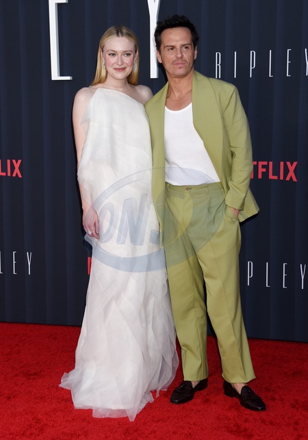 Dakota Fanning and Andrew Scott arriving at Netflix's "Ripley” Premiere Event held at the Egyptian Theatre in Hollywood, CA on April 3, 2024. © Janet Gough / AFF-USA.COM