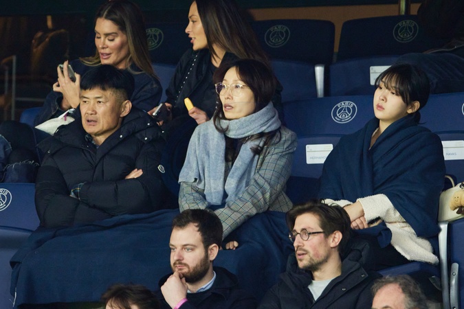 Famille de Lee Kang-in - Célébrités dans les tribunes de la demi-finale de la Coupe de France de football entre le PSG contre Rennes (1-0) au Parc des Princes à Paris le 3 avril 2024. © Cyril Moreau/Bestimage Celebrities in the stands of the semi-final of the French Football Cup between PSG against Rennes (1-0) at the Parc des Princes in Paris on April 3, 2024