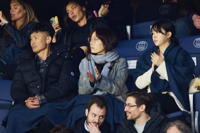 La famille de Lee Kang-in - Célébrités dans les tribunes de la demi-finale de la Coupe de France de football entre le PSG contre Rennes (1-0) au Parc des Princes à Paris le 3 avril 2024. © Cyril Moreau/Bestimage Celebrities in the stands of the semi-final of the French Football Cup between PSG against Rennes (1-0) at the Parc des Princes in Paris on April 3, 2024