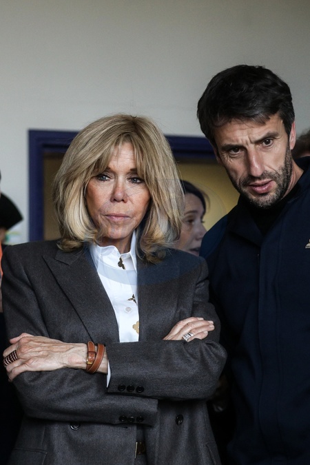 Tony Estanguet, président de Paris 2024 et Brigitte Macron lors de la visite de l'Institut médico-éducatif Léonce Malécot, de l'association "Les Papillons Blancs de la Colline", à Saint-Cloud dans les Hauts-de-Seine dans le cadre de la Semaine Olympique et Paralympique 2024, le 3 avril 2024. © Stéphane Lemouton / Bestimage Visit to the Léonce Malécot medical-educational institute, run by the "Les Papillons Blancs de la Colline" association, in Saint-Cloud in the Hauts-de-Seine department, as part of Olympic and Paralympic Week 2024, on 3 April 2024.