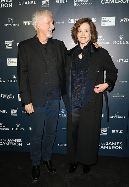 James Cameron et Sigourney Weaver lors du Vernissage de l'exposition "L'Art de James Cameron" à La Cinémathèque française à Paris le 3 avril 2024 © Guirec Coadic / Bestimage Opening of "The Art of James Cameron" exhibition at La Cinémathèque française in Paris on april 3rd 2024