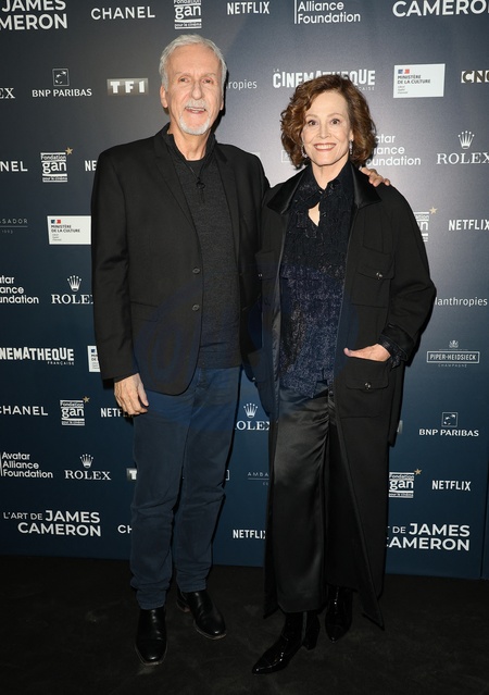 James Cameron et Sigourney Weaver lors du Vernissage de l'exposition "L'Art de James Cameron" à La Cinémathèque française à Paris le 3 avril 2024 © Guirec Coadic / Bestimage Opening of "The Art of James Cameron" exhibition at La Cinémathèque française in Paris on april 3rd 2024