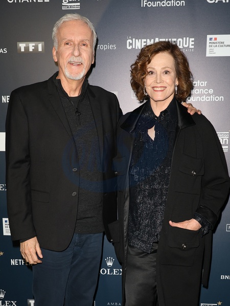 James Cameron et Sigourney Weaver lors du Vernissage de l'exposition "L'Art de James Cameron" à La Cinémathèque française à Paris le 3 avril 2024 © Guirec Coadic / Bestimage Opening of "The Art of James Cameron" exhibition at La Cinémathèque française in Paris on april 3rd 2024