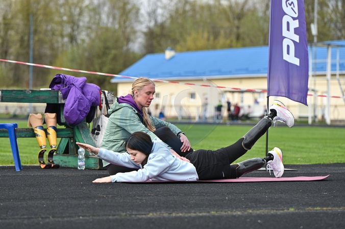 LVIV, UKRAINE - APRIL 04, 2024 - A 12-year-old Ukrainian Yana Stepanenko who lost both her legs in a Russian missile attack on the Kramatorsk train station and now prepares to run the Boston Marathon 5K 2024 race on prostheses is seen during an open training session, Lviv, western Ukraine, Credit:Anastasiia Smolienko / Avalon
