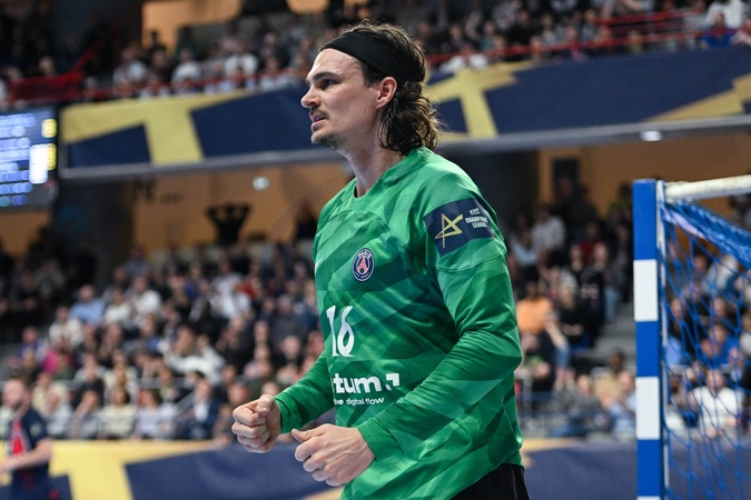 Jannick GREEN ( 16 - PSG ) reacts - Paris Saint Germain remporte la victoire face à Orlen Wisla Plock en barrage retour de la Ligue des Champions (34-33) à Paris, le 4 avril 2024. © Federico Pestellini / Panoramic / Bestimage Paris Saint Germain wins against Orlen Wisla Plock in the second leg of the Champions League (34-33) in Paris, April 4, 2024.
