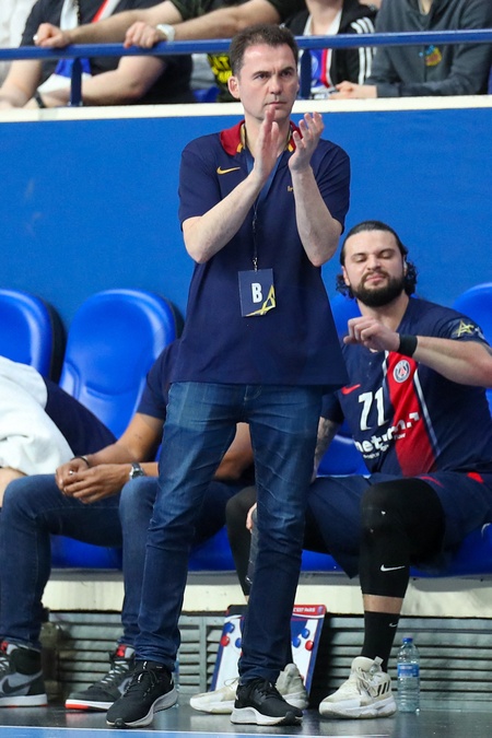 Raul Gonzalez Gutierrez, head coach of Paris Saint-Germain Handball - Paris Saint Germain remporte la victoire face à Orlen Wisla Plock en barrage retour de la Ligue des Champions (34-33) à Paris, le 4 avril 2024. © Kevin Domas / Panoramic / Bestimage Paris Saint Germain wins against Orlen Wisla Plock in the second leg of the Champions League (34-33) in Paris, April 4, 2024.