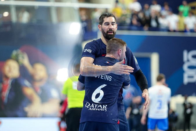 Luc Steins of Paris Saint-Germain Handball and Nikola Karabatic of Paris Saint-Germain Handball - Paris Saint Germain remporte la victoire face à Orlen Wisla Plock en barrage retour de la Ligue des Champions (34-33) à Paris, le 4 avril 2024. © Kevin Domas / Panoramic / Bestimage Paris Saint Germain wins against Orlen Wisla Plock in the second leg of the Champions League (34-33) in Paris, April 4, 2024.