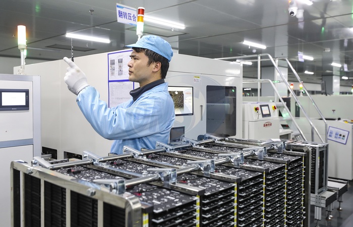 A man works in a plant of LED screens in Huai'an in east China's Jiangsu province Thursday, March 28, 2024., Credit:KARRY ZHAO / Avalon