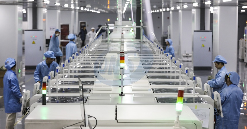 People work in a plant of LED screens in Huai'an in east China's Jiangsu province Thursday, March 28, 2024., Credit:KARRY ZHAO / Avalon