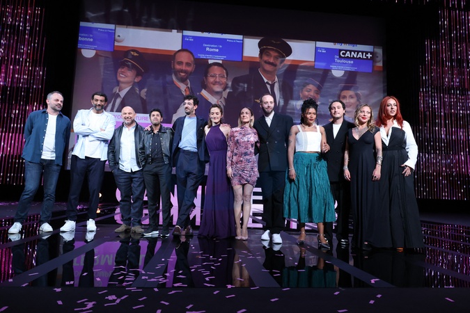 Yohan ZAoui, Ramzy Bedia, Mohamed Hamidi, Jamel Debbouze, Giulio Callegari, Clemence Dargent, Camille Chamoux, Tristan Lopin, Laureen, Samuel Djian Bambi, Doully et Alexandra Roth - Cérémonie d'ouverture de la 7ème saison de "CanneSeries" à Cannes le 5 avril 2024. © Denis Guignebourg/Bestimage Opening night of the 7th season of "CanneSeries” in Cannes on April 5, 2024.