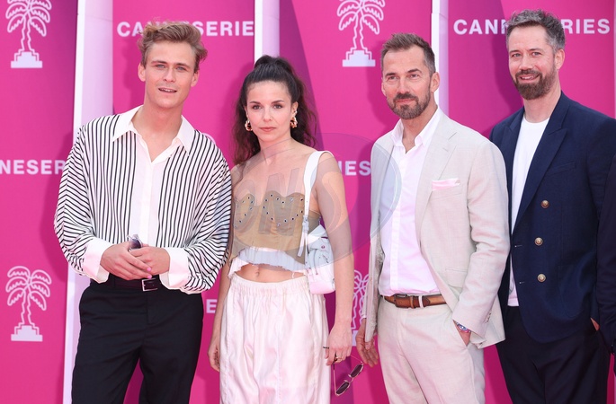 Hector Langevin, Raphaele Volkoff, Franck Monsigny, Emmanuel Moire et Farouk Bermouga - Soirée d'ouverture de la 7ème saison de "CanneSeries" à Cannes le 5 avril 2024. © Denis Guignebourg/Bestimage Opening night of the 7th season of "CanneSeries” in Cannes on April 5, 2024.