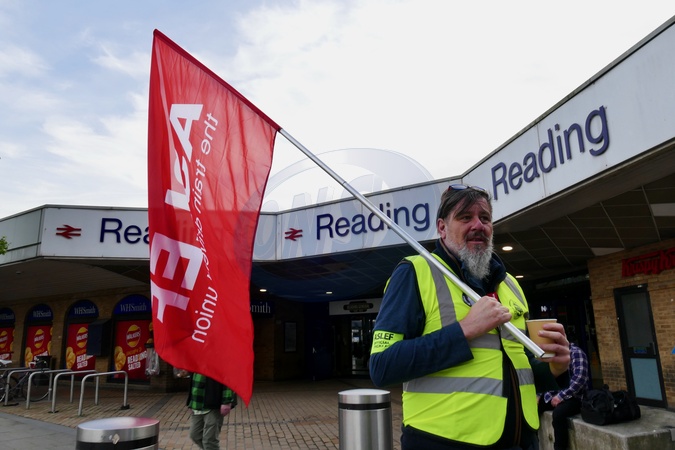 The official Aslef picket line outside Reading Station this morning., Credit:Geoffrey Swaine / Avalon