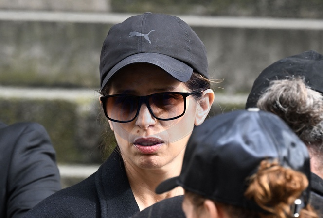 Maïwenn - Arrivées aux obsèques de Jean-Yves Le Fur en l'église Saint-Roch à Paris, le 6 avril 2024. The funeral of Jean-Yves Le Fur at the Saint-Roch church in Paris, April 6, 2024.