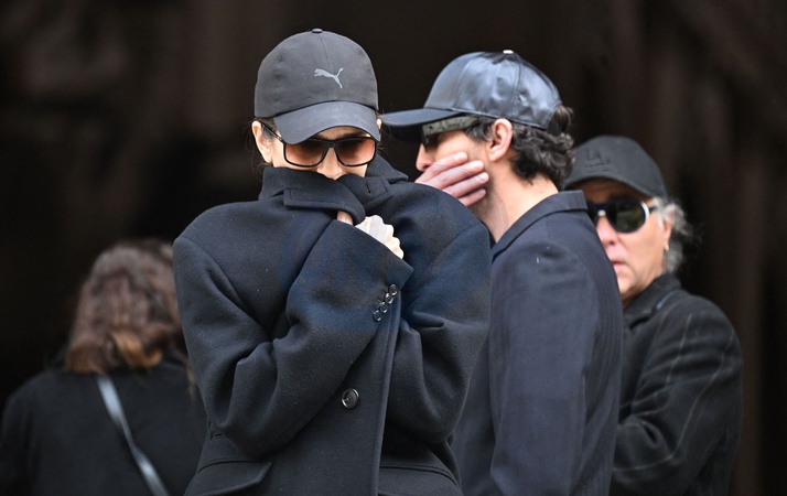 Maïwenn et son fils Diego Le Fur - Arrivées aux obsèques de Jean-Yves Le Fur en l'église Saint-Roch à Paris, le 6 avril 2024. The funeral of Jean-Yves Le Fur at the Saint-Roch church in Paris, April 6, 2024.