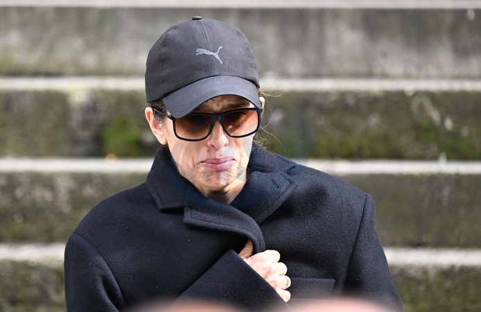Maïwenn - Arrivées aux obsèques de Jean-Yves Le Fur en l'église Saint-Roch à Paris, le 6 avril 2024. The funeral of Jean-Yves Le Fur at the Saint-Roch church in Paris, April 6, 2024.