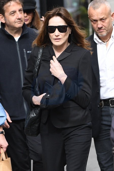 Carla Bruni - Arrivées aux obsèques de Jean-Yves Le Fur en l'église Saint-Roch à Paris, le 6 avril 2024. The funeral of Jean-Yves Le Fur at the Saint-Roch church in Paris, April 6, 2024.