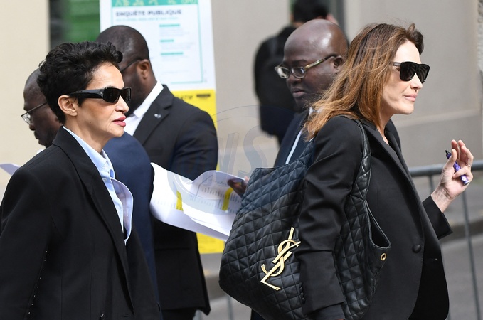 Carla Bruni et Farida Khelfa - Arrivées aux obsèques de Jean-Yves Le Fur en l'église Saint-Roch à Paris, le 6 avril 2024. The funeral of Jean-Yves Le Fur at the Saint-Roch church in Paris, April 6, 2024.