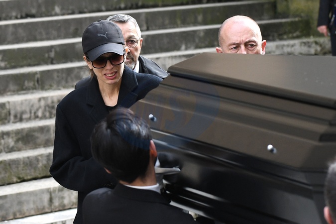 Maïwenn - Arrivées aux obsèques de Jean-Yves Le Fur en l'église Saint-Roch à Paris, le 6 avril 2024. The funeral of Jean-Yves Le Fur at the Saint-Roch church in Paris, April 6, 2024.