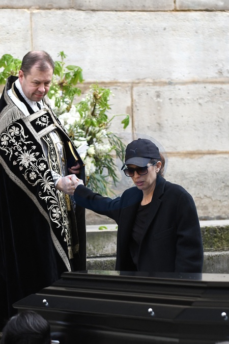Maïwenn - Arrivées aux obsèques de Jean-Yves Le Fur en l'église Saint-Roch à Paris, le 6 avril 2024. The funeral of Jean-Yves Le Fur at the Saint-Roch church in Paris, April 6, 2024.