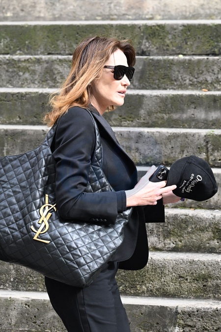Carla Bruni - Arrivées aux obsèques de Jean-Yves Le Fur en l'église Saint-Roch à Paris, le 6 avril 2024. The funeral of Jean-Yves Le Fur at the Saint-Roch church in Paris, April 6, 2024.