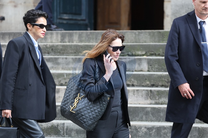 Farida Khelfa et Carla Bruni - Arrivées aux obsèques de Jean-Yves Le Fur en l'église Saint-Roch à Paris, le 6 avril 2024. ©Jacovides / Moreau / Bestimage Funeral ceremony for French businessman Jean-Yves Le Fur at Saint Roch Church in Paris, France on April 6, 2024. Jean-Yves Le Fur was a businessman invested in the world of media, died at the age of 59 due to pancreatic cancer. He was former fiance of Princess Stephanie of Monaco and has a son, Diego with French actress and director Maiwenn, and was Kate Moss's godfather at her wedding to Jamie Hince.