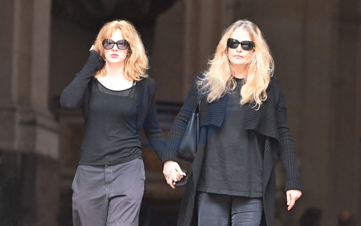 Karen Mulder et sa fille Anna - Sortie des obsèques de Jean-Yves Le Fur en l'église Saint-Roch à Paris, le 6 avril 2024. Funeral ceremony for French businessman Jean-Yves Le Fur at Saint Roch Church in Paris, France on April 6, 2024. Jean-Yves Le Fur was a businessman invested in the world of media, died at the age of 59 due to pancreatic cancer. He was former fiance of Princess Stephanie of Monaco and has a son, Diego with French actress and director Maiwenn, and was K.Moss's godfather at her wedding to J.Hince.