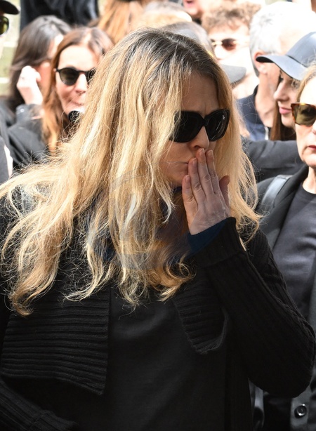 Carla Bruni Wyjście z pogrzebu Jean-Yvesa Le Fura w kościele Saint-Roch w Paryżu