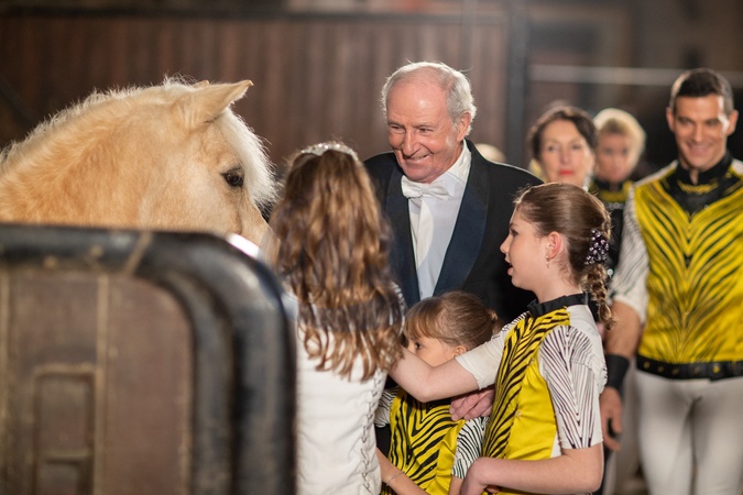 Exclusif - No Web - Alexis Gruss et ses petits enfants - Backstage - Enregistrement de l'émission "La grande soirée du 31" à Chantilly" au Château de Chantilly, diffusée le 31 décembre sur France 2. © Tiziano da Silva-Cyril Moreau / Bestimage Pour clore cette année 2021 en beauté, France Télévisions, fidèle à son engagement en faveur dupatrimoine, offre à son public une soirée de réveillon populaire et festive au château de Chantilly, présentée par Stéphane Bern. France Télévisions marque une fois encore, au travers decette soirée exceptionnelle, l'engagement du service public en faveur duspectacle vivant, de la musique et du patrimoine. Les équipes deFrance Télévisions,d'Electron Libre/Kisayang et de France 2 se sont installées au châteaude Chantilly pour organiser cet événement musical aussi populaire qu'éclectique. C'est ici, au cœur des grandes écuries de Chantilly,que nous allons faire la fête, chanter et danser sur des rythmes disco. Un endroit étonnant,sublimé pour cette soirée orchestrée par Stéphane Bern entouré de chanteurs, d'artistes aux multiples talents et des danseurs de la troupe du Paradis Latin, sous la direction artistique de K.Ouali ! Lestroupes du Moulin Rouge, du Lido et du Paradis Latin, leCirquePhénix et les Folies Gruss, enchanteront ce réveillon avec des visuelsmagiques dans les grandes écuries du château de Chantilly. Chantilly en quelques mots… Chantilly, le château des princes. Un lieu qui regorge de collections exceptionnelles. Le duc d'Aumale, fils de Louis-Philippe, y avait notamment rassemblé la seconde plus belle collection de peintures en France, après celle du Louvre…Et puis Chantilly, c'est aussi les plus grandes écuries princières d'Europe. Un véritable palais pour chevaux, chef-d'œuvre du XVIIIe siècle qui abrite ce magnifique lieu de spectacle. L'émission sera diffusée surTV5 Monde. Evénement en partenariat avec Spotify etFrance Bleu qui diffusera la soirée en simultané sur son antenne. Exclusive - No Web No Blog pour Belgique et Suisse