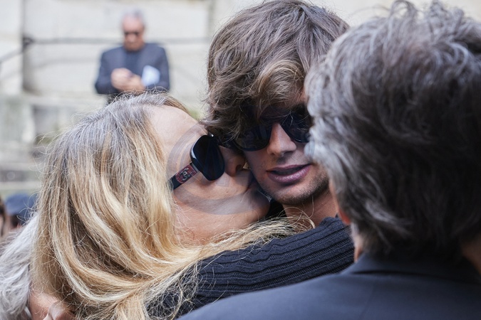 Karen Mulder, Diego Le Fur - Sortie des obsèques de Jean-Yves Le Fur en l'église Saint-Roch à Paris, le 6 avril 2024. © Cyril Moreau-Dominique Jacovides/Bestimage Funeral ceremony for French businessman Jean-Yves Le Fur at Saint Roch Church in Paris, France on April 6, 2024. Jean-Yves Le Fur was a businessman invested in the world of media, died at the age of 59 due to pancreatic cancer. He was former fiance of Princess Stephanie of Monaco and has a son, Diego with French actress and director Maiwenn, and was K.Moss's godfather at her wedding to J.Hince.