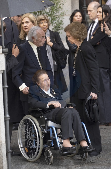Le roi Felipe VI d'Espagne et la famille royale espagnole réunis pour rendre un dernier hommage à Fernando Gómez-Acebo en l'église du Sacrement de Madrid le 8 avril 2024. Cristina de Borbon, Emeritense Queen Sofia - Funeral mass in memory of Fernando Gomez-Acebo y Borbon (King Felipe VI cousin) at the Iglesia Catedral de las Fuerzas Armadas. Madrid - April 8, 2024