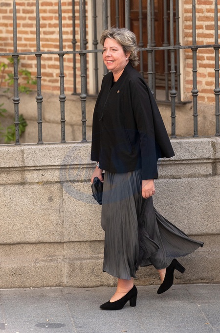 Le roi Felipe VI d'Espagne et la famille royale espagnole réunis pour rendre un dernier hommage à Fernando Gómez-Acebo en l'église du Sacrement de Madrid le 8 avril 2024. Simoneta Gomez Acebo - Funeral mass in memory of Fernando Gomez-Acebo y Borbon (King Felipe VI cousin) at the Iglesia Catedral de las Fuerzas Armadas. Madrid - April 8, 2024