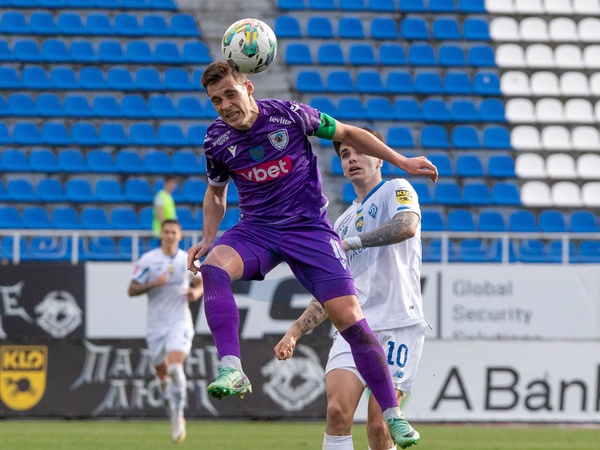 KYIV, UKRAINE - APRIL 8, 2024 - Midfielder Vitalii Boiko (front) of FC LNZ Cherkasy and midfielder Mykola Shaparenko of FC Dynamo Kyiv are seen in action during the Ukrainian Premier League Matchday 23 fixture at the Valeriy Lobanovskyi Dynamo Stadium, Kyiv, capital of Ukraine., Credit:Pavlo_Bagmut / Avalon