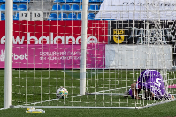 KYIV, UKRAINE - APRIL 8, 2024 - Defender Hajdin Salihu of FC LNZ Cherkasy trips in a goal during the Ukrainian Premier League Matchday 23 fixture against FC Dynamo Kyiv at the Valeriy Lobanovskyi Dynamo Stadium, Kyiv, capital of Ukraine., Credit:Pavlo_Bagmut / Avalon