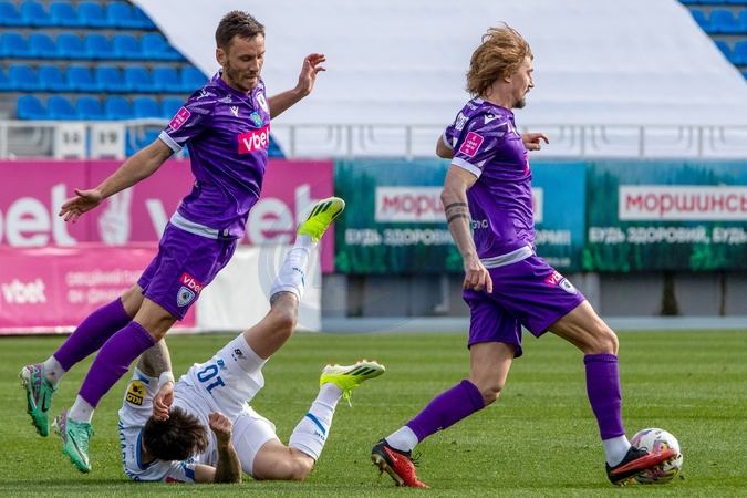 KYIV, UKRAINE - APRIL 8, 2024 - Players of FC Dynamo Kyiv (white kit) and FC LNZ Cherkasy (purple kit) are seen in action during the Ukrainian Premier League Matchday 23 fixture at the Valeriy Lobanovskyi Dynamo Stadium, Kyiv, capital of Ukraine., Credit:Pavlo_Bagmut / Avalon