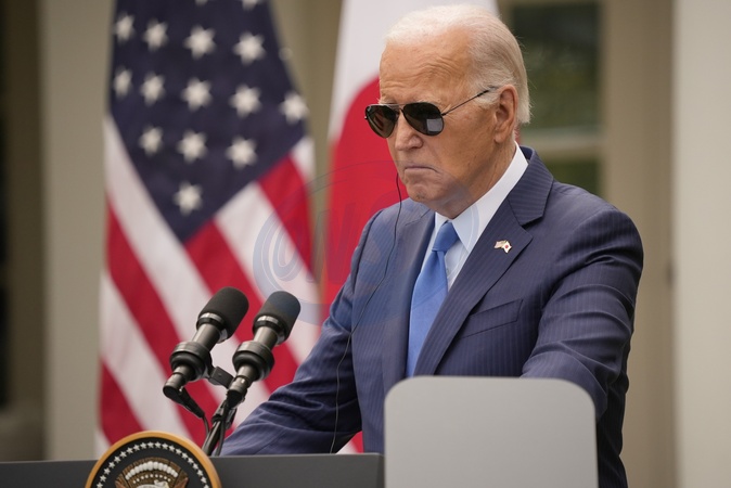 United States President Joe Biden and Prime Minister Kishida Fumio of Japan hold a joint press conference in the Rose Garden of the White House in Washington, DC on Wednesday, April 10, 2024., Credit:Ken Cedeno - CNP / Avalon