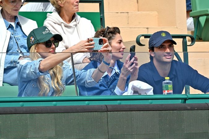 Candice Swanepoel, Rebecca Donaldson et Carlos Sainz - People dans les tribunes de l'Open de Tennis "Masters 1000 de Monte-Carlo" à Roquebrune Cap Martin. Le 10 avril 2024 © Bruno Bebert / Bestimage People at the "Monte-Carlo Masters 1000” Tennis Open in Roquebrune Cap Martin. April 10, 2024 © Bruno Bebert / Bestimage People in the stands at the Monte-Carlo Masters 1000 Tennis Open in Roquebrune Cap Martin on april 10th 2024