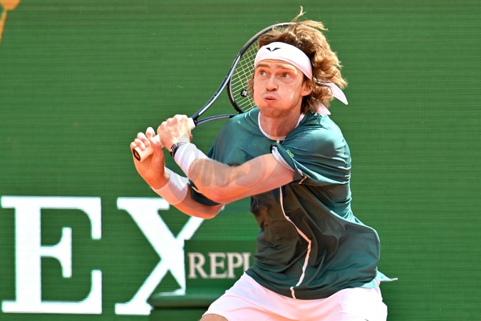 Andrey Rublev durant son match contre Alexei Popyrin à l'Open de Tennis "Masters 1000 de Monte-Carlo" à Roquebrune Cap Martin. Le 10 avril 2024 © Bruno Bebert / Bestimage Andrey Rublev during the "Monte-Carlo Masters 1000” Tennis Open in Roquebrune Cap Martin. April 10, 2024 © Bruno Bebert / Bestimage People in the stands at the Monte-Carlo Masters 1000 Tennis Open in Roquebrune Cap Martin on april 10th 2024