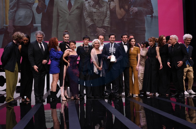 Leo Altaras, Eleanor Reissa, David Hadda, Aaron Altaras, Deleila Piasko, guest (Prix de la Meilleure Série pour "The Zweiflers") - Cérémonie de clôture de la saison 7 du festival "Canneseries" à Cannes, avant la projection de la série "Franklin". Le 10 avril 2024 © Denis Guignebourg / Bestimage Closing ceremony and global premiere of "Franklin" during CANNESERIES at Palais des Festivals in Cannes. On April 10, 2024