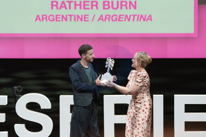 Laura Grandinetti, Sebastián Tornamira, Julieta Zapiola (Prix de la Meilleure série courte pour "Rather Burn") - Cérémonie de clôture de la saison 7 du festival "Canneseries" à Cannes, avant la projection de la série "Franklin". Le 10 avril 2024 © Norbert Scanella / Panoramic / Bestimage Closing ceremony and global premiere of "Franklin" during CANNESERIES at Palais des Festivals in Cannes. On April 10, 2024