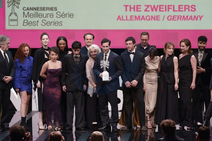 Leo Altaras, Eleanor Reissa, David Hadda, Aaron Altaras, Deleila Piasko (Prix de la Meilleure Série pour "The Zweiflers") - Cérémonie de clôture de la saison 7 du festival "Canneseries" à Cannes, avant la projection de la série "Franklin". Le 10 avril 2024 © Norbert Scanella / Panoramic / Bestimage Closing ceremony and global premiere of "Franklin" during CANNESERIES at Palais des Festivals in Cannes. On April 10, 2024