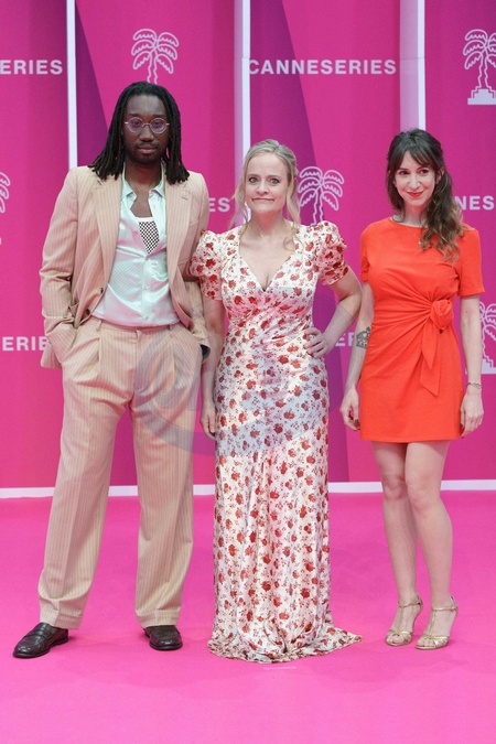 Nathan Stewart Jarrett, Henriette Steenstrup, Pénélope Bagieu- Photocall de la cérémonie de clôture lors de la saison 7 du festival Canneseries à Cannes. Le 10 avril 2024 © Norbert Scanella / Panoramic / Bestimage Photocall of the closing ceremony and global premiere of "Franklin" during CANNESERIES at Palais des Festivals in Cannes. On April 10, 2024