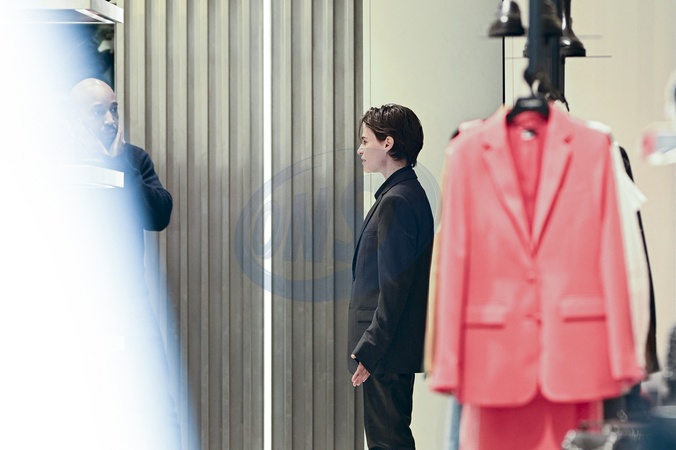 Redcar (Christine and the Queens / Chris) wykonuje przymiarki w sklepie „The Kooples” w Paryżu