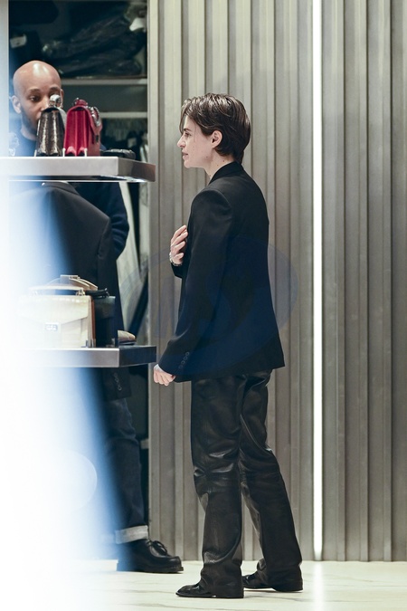 Redcar (Christine and the Queens / Chris) wykonuje przymiarki w sklepie „The Kooples” w Paryżu