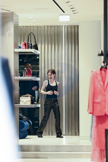 Redcar (Christine and the Queens / Chris) wykonuje przymiarki w sklepie „The Kooples” w Paryżu