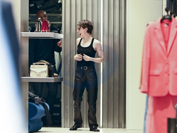 Redcar (Christine and the Queens / Chris) wykonuje przymiarki w sklepie „The Kooples” w Paryżu