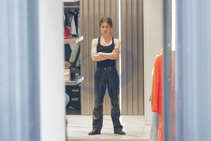 Redcar (Christine and the Queens / Chris) wykonuje przymiarki w sklepie „The Kooples” w Paryżu