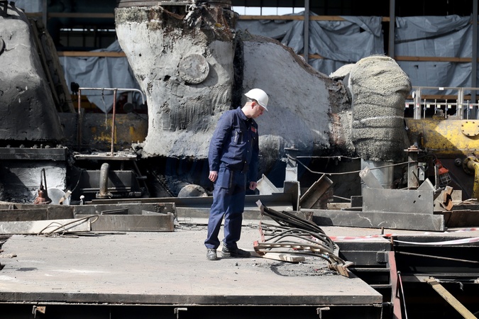 KHARKIV REGION, UKRAINE - APRIL 11, 2024 - A worker is seen at the Kharkiv Combined Heat and Power Plant (CHP) damaged by Russian shelling, Kharkiv Region, northeastern Ukraine., Credit:Vyacheslav Madiyevskyy / Avalon
