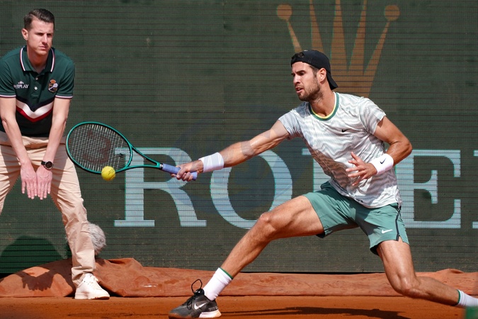 Karen Khachanov (Russie) - 8ème de finale du Rolex Monte-Carlo Masters à Roquebrune-Cap-Martin le 11 avril 2024. © Norbert Scanella / Panoramic / Bestimage 8th final of the Rolex Monte-Carlo Masters in Roquebrune-Cap-Martin on 11 April 2024.